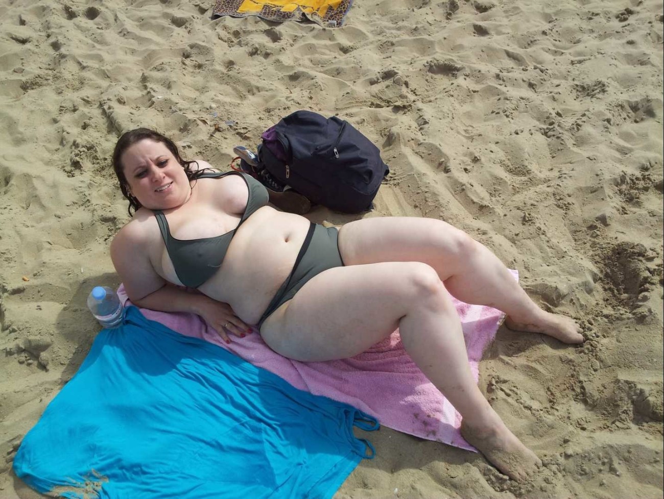 Bodacious Plumper in bathing suit gets her belly button fumbled